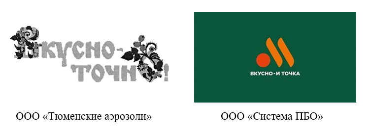 Истец также указал, что товары в рамках регистрации обозначения не однородны с товарами владельцев ранее зарегистрированных знаков. Товарные знаки «Вкусно и точка» принадлежат лицу, оказывающему услуги общественного питания, а «Тюменские аэрозоли» выпускает продукцию для конечных потребителей и реализует ее через розничные магазины, что снижает риск путаницы.