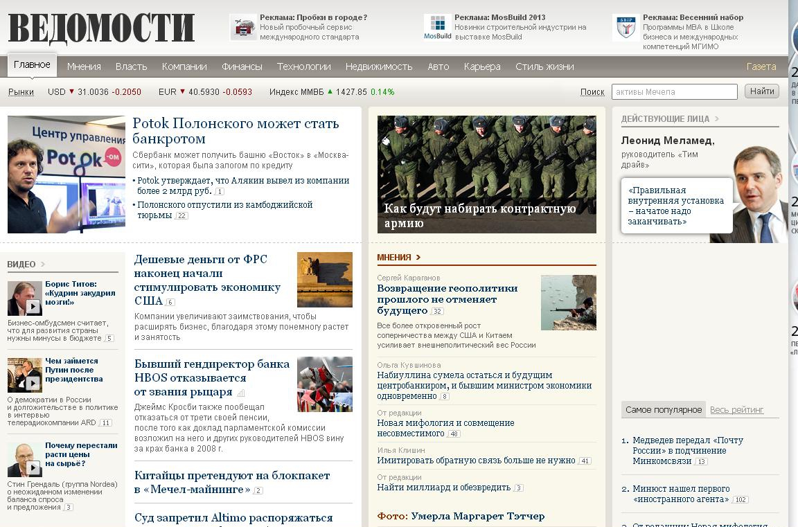 Шеф-редактором интернет версии газеты «Ведомости» назначена редактор отделов «Индустрия» и «Энергоресурсы» Екатерина Дербилова, сменившая на этом посту Павла Сухова. Об этом сообщает РИА Новости со ссылкой на издателя газеты Михаила Дубика.