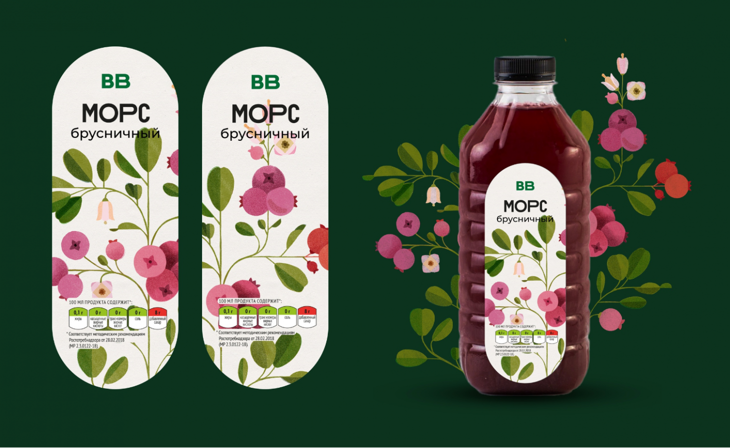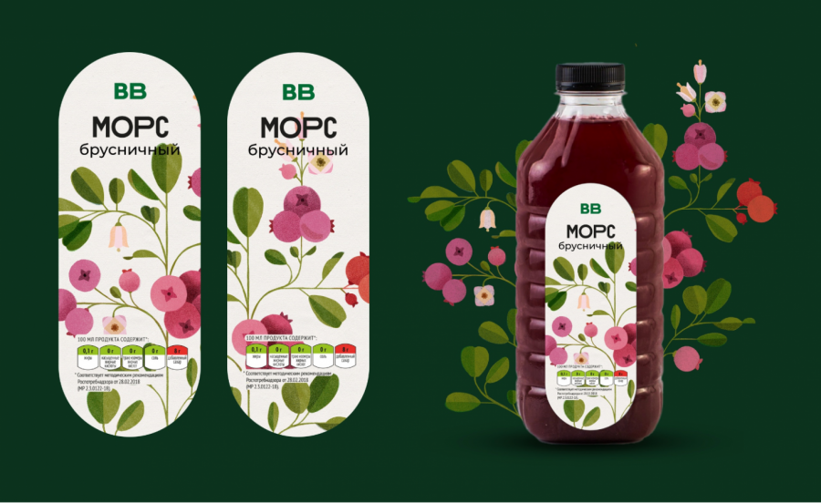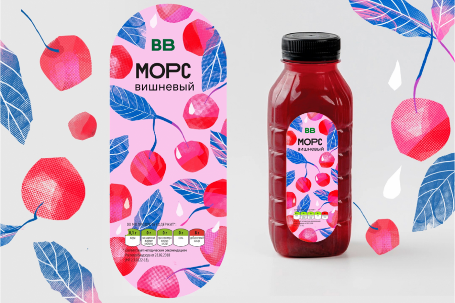 Поскольку все участники прислали рисунки сразу адаптированные под макеты, процесс переноса рисунков на упаковку не занял много времени. Уже сегодня по всей сети можно найти морсы из смеси черной и красной смородины, вишни, облепихи и брусники с рисунками победителей.