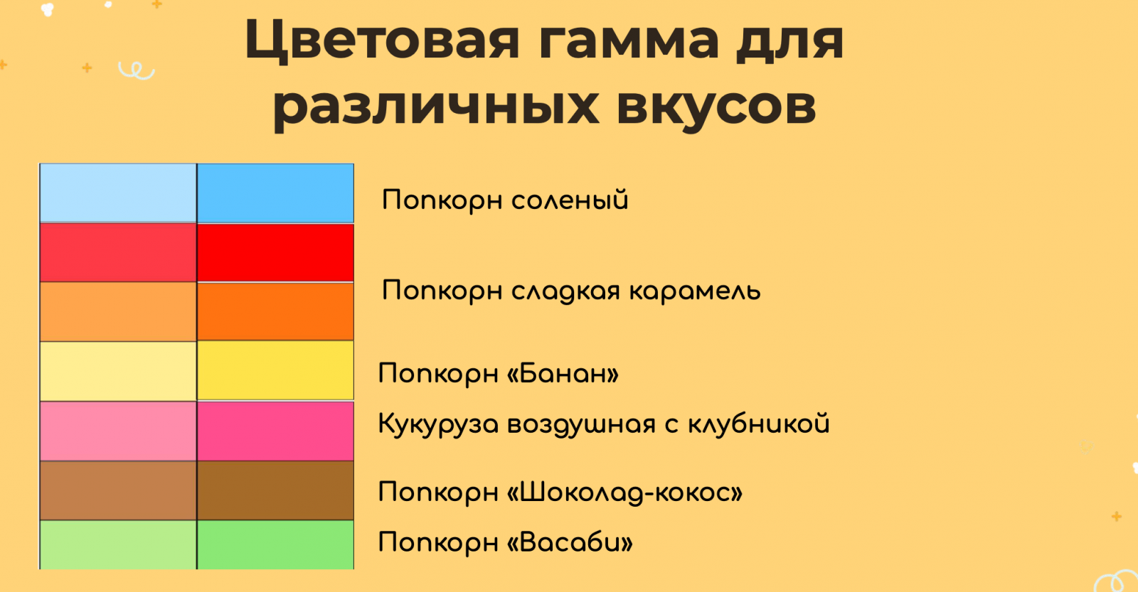 Ребята провели большое исследование и предложили нам разработку двух концепций дизайна попкорна. Со своей стороны мы попросили покупателей выбрать тот дизайн, который им нравится больше всего. Команда удивила нас не только своими идеями, но и почти профессиональным подходом. Они изучили целевую аудиторию, посмотрели на конкурентов — и предложили действительно рабочие идеи.