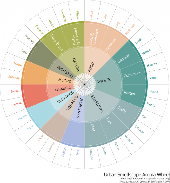 Поскольку запахи сложно представлять в наглядной форме, разработчики решили прибегнуть к помощи волонтеров. В частности, ученые создали словарь запахов, где каждому из них соответствовал свой цвет. Затем разработчики попросили жителей таких городов как Нью-Йорк, Амстердам, Глазго и др. провести так называемые «обонятельные прогулки», в ходе которых люди записывали, на каких улицах они встречали тот или иной запах.