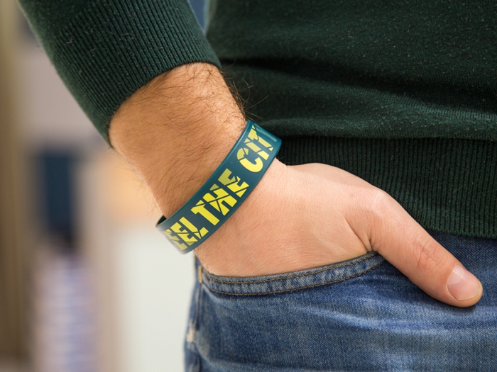 Графический элемент является основой фирменного стиля, он проходит через всю визуальную коммуникацию бренда, а также находит своё объёмное воплощение в виде масштабной бренд-стены в кассовой зоне магазина. Кассовый модуль дополнен световым эквалайзером на лицевой части и связывает оформление магазина с атмосферой движения и ритма.