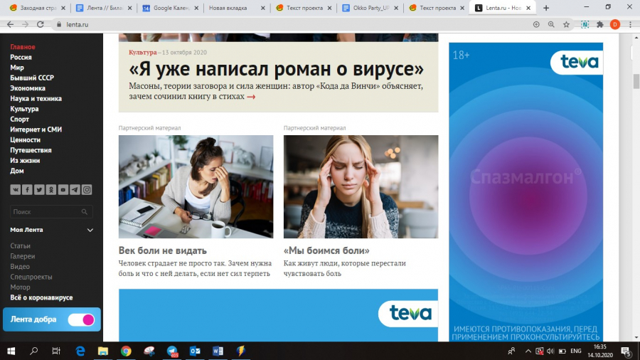 На хорошее настроение и позитивный настрой колоссально влияет общее инфополе, в котором мы находимся. К сожалению, сегодня оно перенасыщено негативными новостями, поток которых значительно увеличился в период распространения COVID-19. Людям, уставшим от такого большого количества негативной информации, очень не хватает хороших новостей. Плохое настроение, тревожность, внутренние страхи, паника разрушают здоровье. В этот сложный для всех период «Спазмалгон» создал единое инфопространство без негатива и тревоги и запустил проект «Лента добра».
