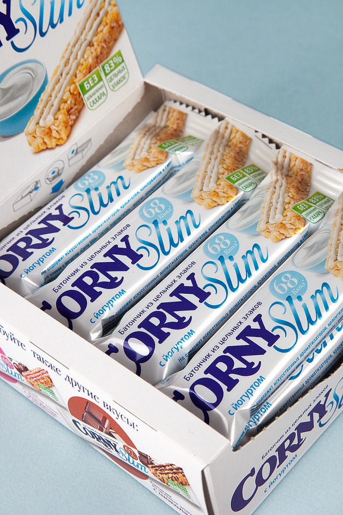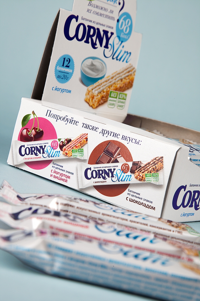 Агентство UNIQA C.E. разработало графический дизайн упаковки новой для российского рынка линейки батончиков торговой марки Corny – Corny Slim. Идея базовой концепции дизайна упаковки родилась как результат анализа современных модных журналов и женских интернет-сайтов, а в частности – из характерного для них графического и шрифтового оформления статей о здоровом образе жизни и уходе за собой.