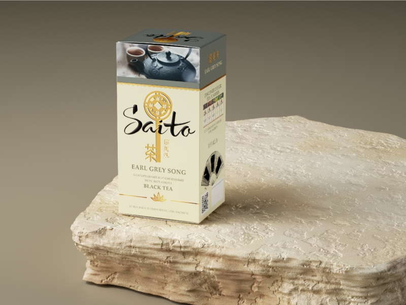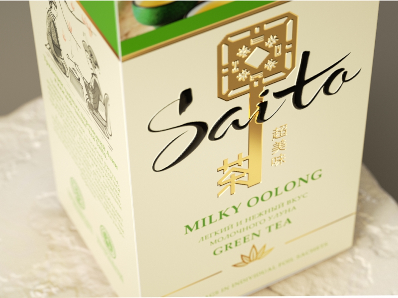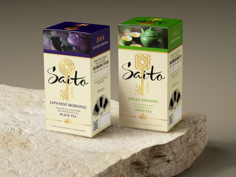 На боковой части упаковки присутствует иллюстрация двух людей в позе «сейдза» — правильной позе сидения на коленях в процессе чайной церемонии. На другой стороне прорезано окно в виде веера, через которое видны упакованные сашеты. На каждой упаковке присутствует лотос, приносящий удачу. Подробнее на Sostav.