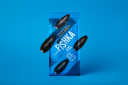 Яркая индивидуализация образа четко дифференцирует каждую позицию. Необычный для этого продуктового сегмента светло-синий цвет стал основным визуальным маркером бренда. Дополнительные цветовые элементы этикетки закладывают перспективы расширения линейки вкусов.