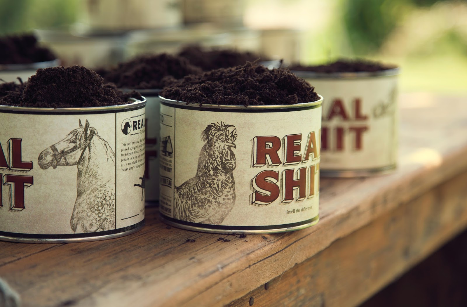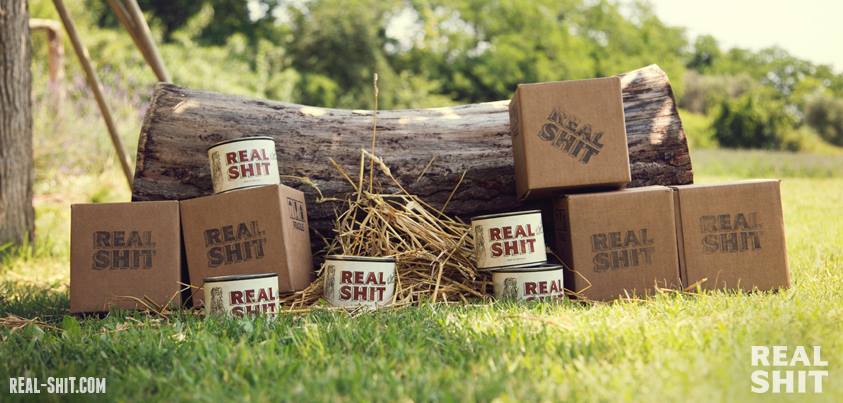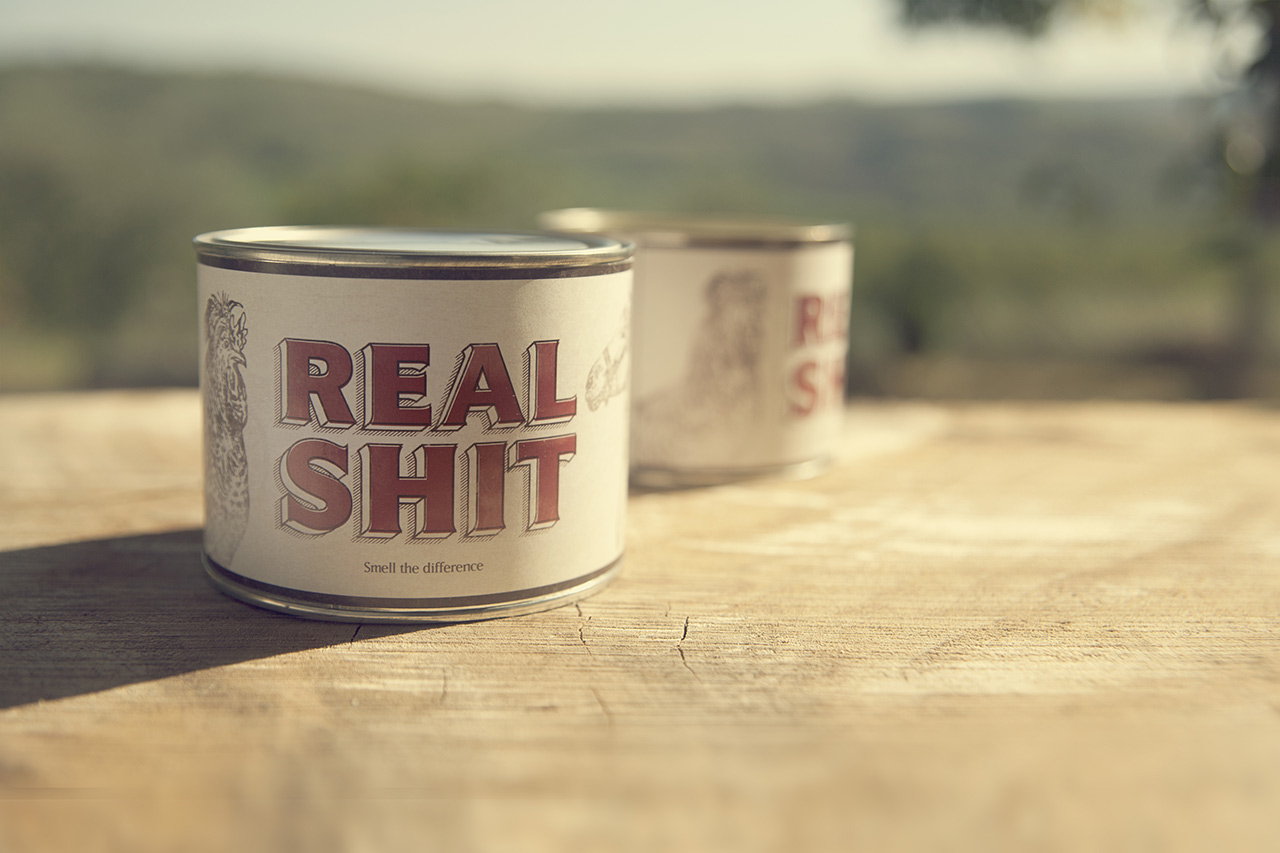 Дизайнеры Алан Диндо, Федерико Лодолини и Рикардо Меркати создали упаковку для бренда Real Shit. Итальянская компания производит органический навоз и продает его в металлических банках по 500 г.