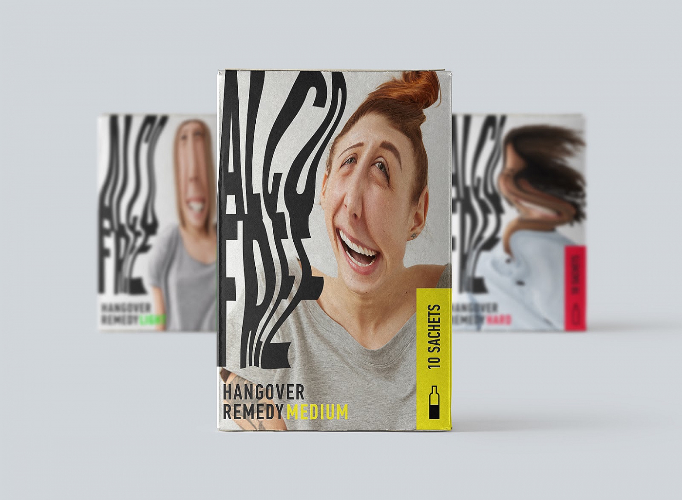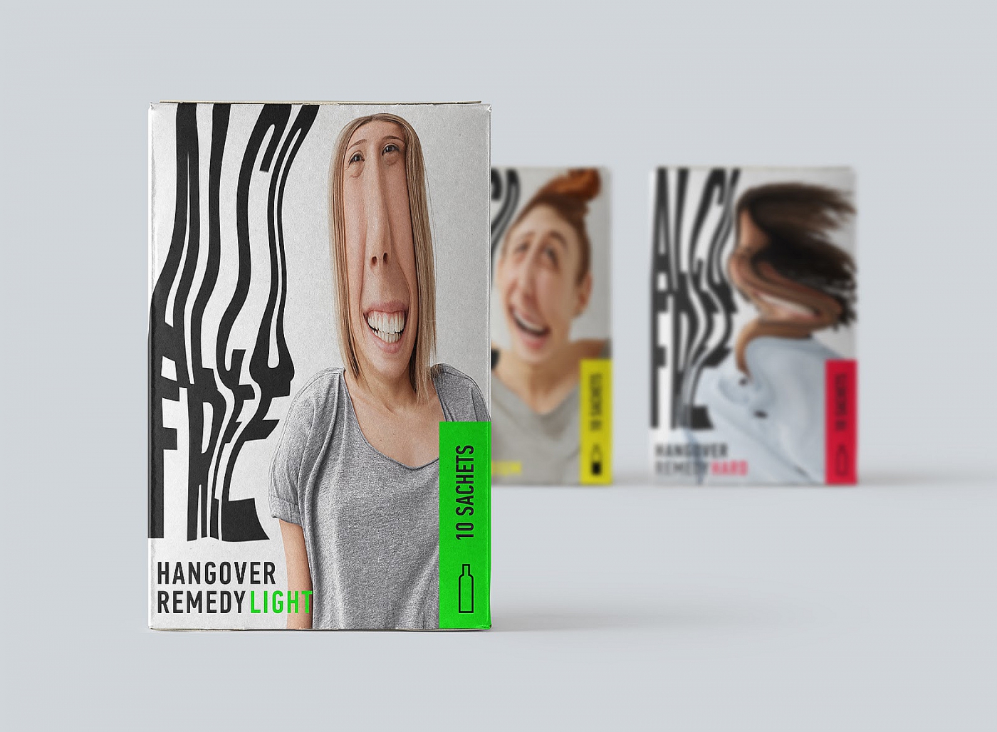 Я долго думала, как упаковать смех, и вспомнила, как в детстве ходила в комнату смеха. Было весело смотреть на свои отражения в кривых зеркалах. Эта искаженная картинка в зеркале очень напоминает ощущения с утра после веселой вечеринки. Я совместила эти два сюжета и сделала энергетический напиток для тех, кому надо быстро прийти в форму после праздника.