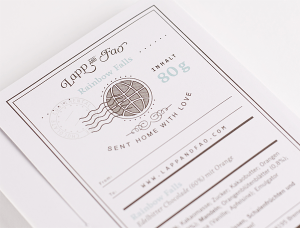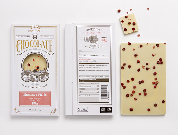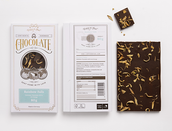 Немецкий производитель кондитерских изделий Lapp & Fao представил шоколадную линию с удивительной концепцией дизайна, выполненной в виде туристической открытки. Линейка представляет шоколад, объединяющей рецепты из разных уголков мира, что и подчеркивает необычный дизайн, отсылающий к путешествиям в далекие страны.
