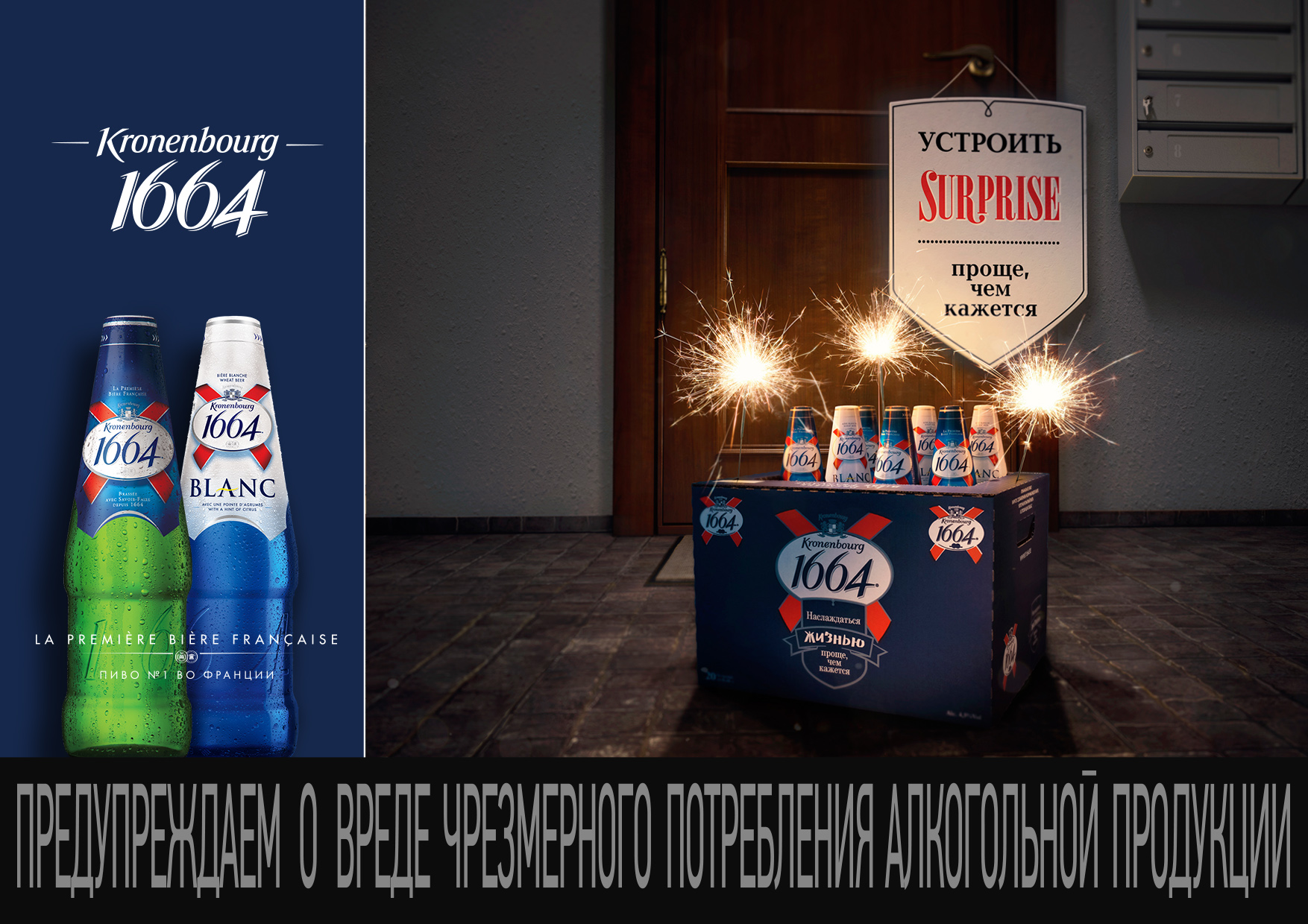 Пивной бренд Kronenbourg 1664, который не так давно отметил 350-летний юбилей, предлагает получать наслаждение от каждого момента жизни, как делают это французы. Традиционно считается, что «французское» означает «сложное». Kronenbourg 1664 решил развенчать этот миф: в его новой рекламной кампании «Проще, чем кажется» рассказывается о простых и понятных удовольствиях в жизни.