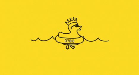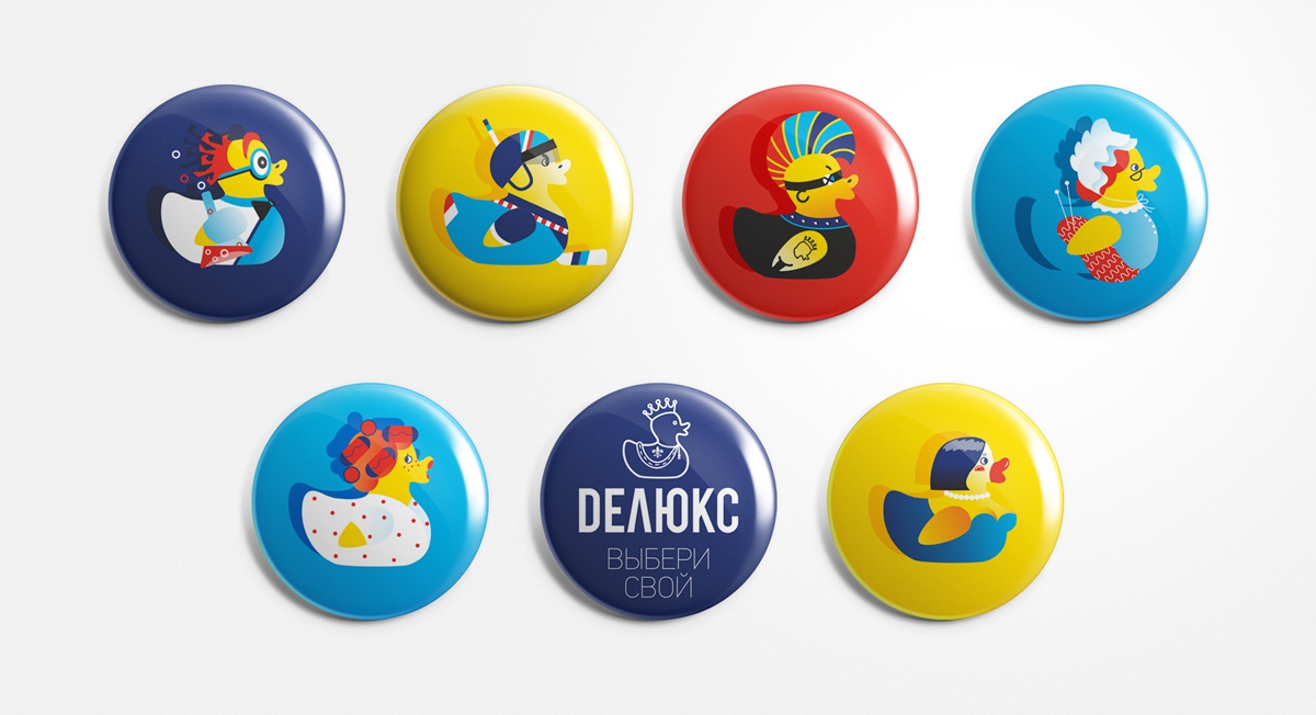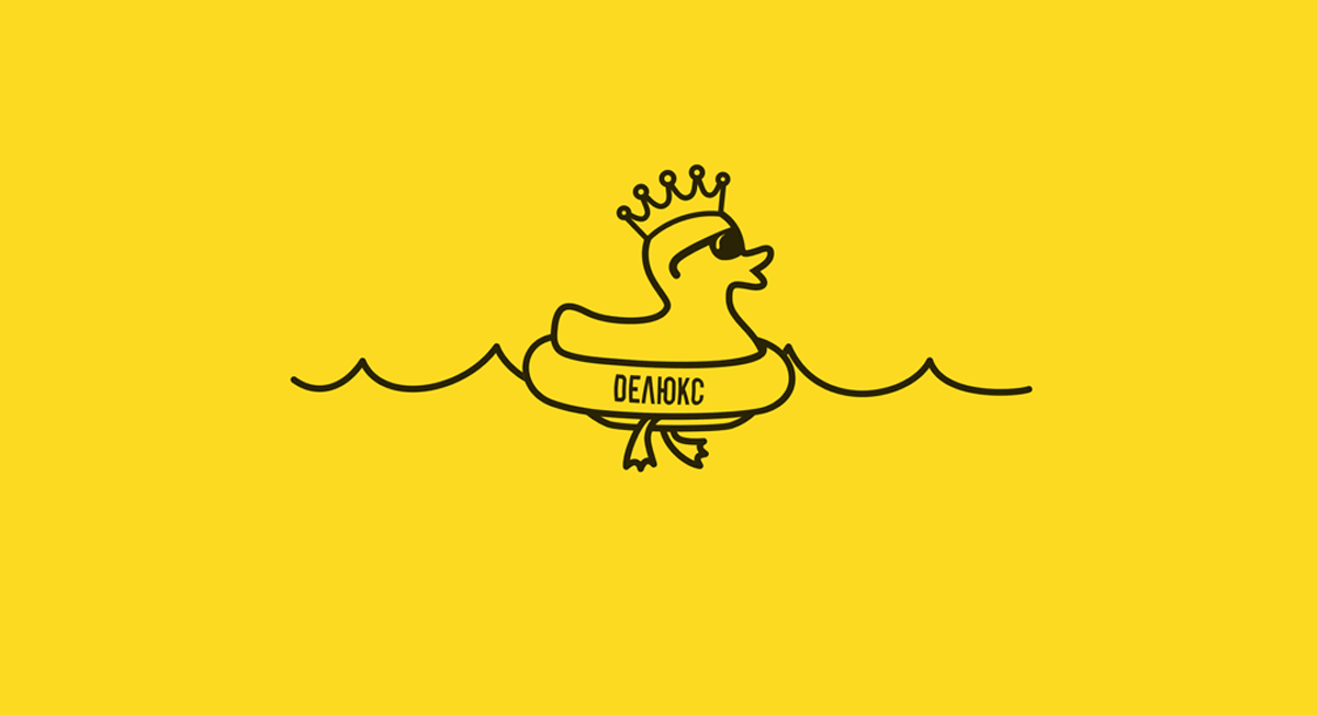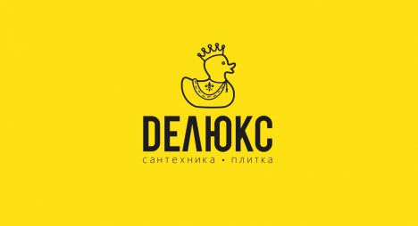 В качестве фирменного знака было предложено использовать образ игрушки для купания - резинового утенка, которого нарядили в королевскую мантию и украсили короной. Такая эмблема тематически соотносится с продукцией магазина, а также незатейливо «играет» с названием, уверены авторы проекта. Шрифтовая часть логотипа выполнена в специально разработанном начертании.