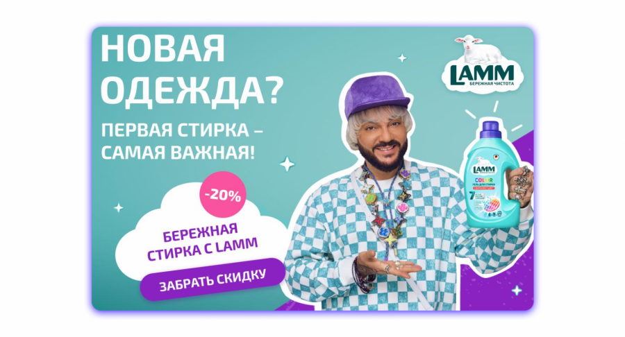 Основная идея — найти пользователей, которые покупают или недавно купили одежду и привести их на лендинг, заинтересовав оффером со скидкой на покупку товаров бренда. Довольно быстро родилось рабочее название проекта — «Бережная стирка с LAMM».