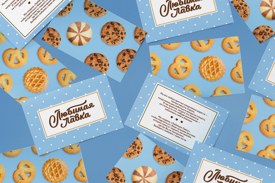 Разработанное позиционирование отражает преимущества самой бизнес-модели: в линейку сладостей группы компаний «Витрум» входят самые популярные в категории позиции. Акцент ставится на том, что под торговой маркой продается все самое любимое — исходя из этого был создан нейм «Любимая лавка».