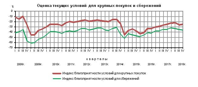Впрочем, не все так однозначно. Тот же Росстат РФ фиксирует рост «Индекса благоприятности условий для крупных покупок» в четвертом квартале.