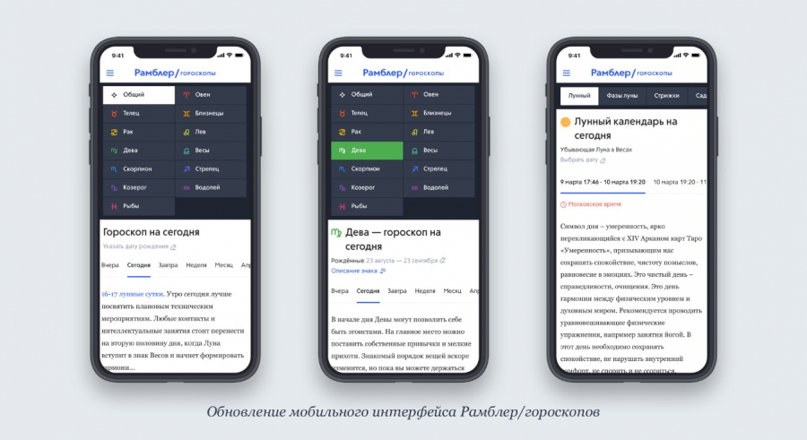 Сильно вырос интерес пользователей к разделу «Рамблер/гороскопы». Как пишет пресс-служба компании, весной проект стал лидером в категории «астрология и гороскопы» по количеству уникальных пользователей и сохранял эту позицию до конца года. В декабре количество посетителей в данном разделе составило почти 5,3 млн человек.