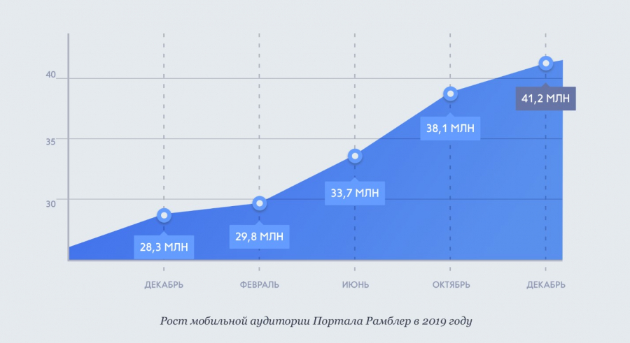 Компания заявила, что в 2019 году она значительно улучшила опыт взаимодействия с мобильной аудиторией, в связи с чем рост уникальных пользователей вырос на 45%. В итоге она составила 41 млн человек — это 68% от общего числа пользователей сервисов «Рамблер».