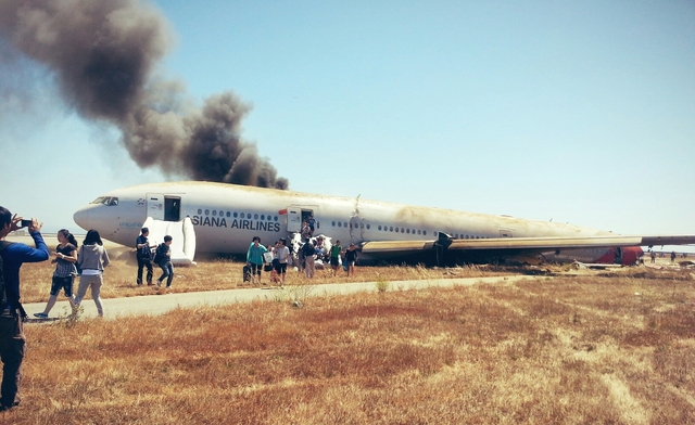 Самолет Boeing 777-200 принадлежал авиакомпании Asiana Airlines и совершал рейс из Сеула. При неудачной посадке лайнер лишился хвостовой части, верхняя часть фюзеляжа сгорела. На борту судна находилось 290 человек, двое из них погибли.