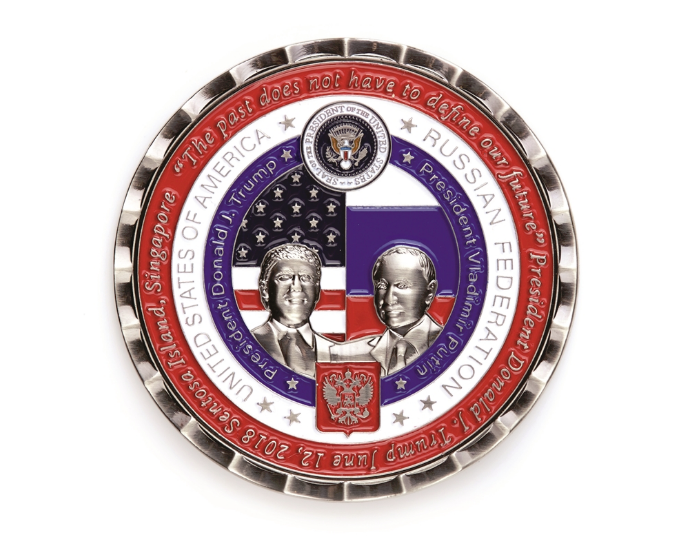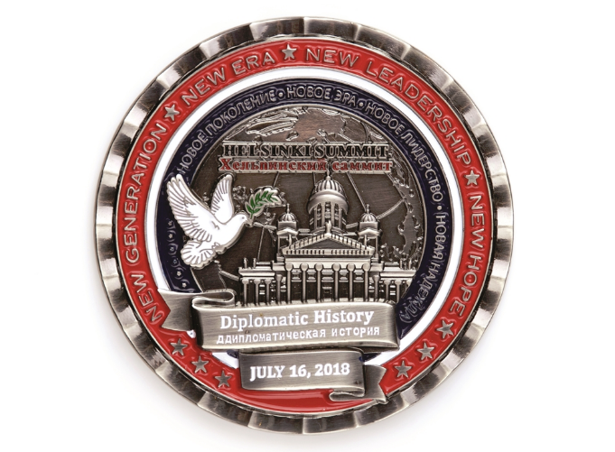 Интернет-магазин White House отчеканил памятную монету в честь встречи Владимира Путина и Дональда Трампа в Хельсинки с тремя ошибками. Монета выставлена на продажу на официальном сайте сувенирного магазина Белого дома за 100$.