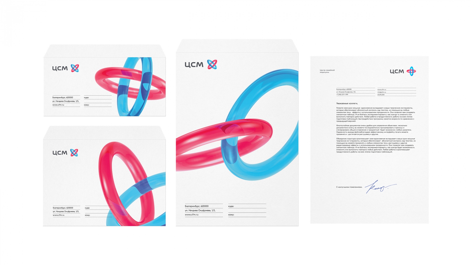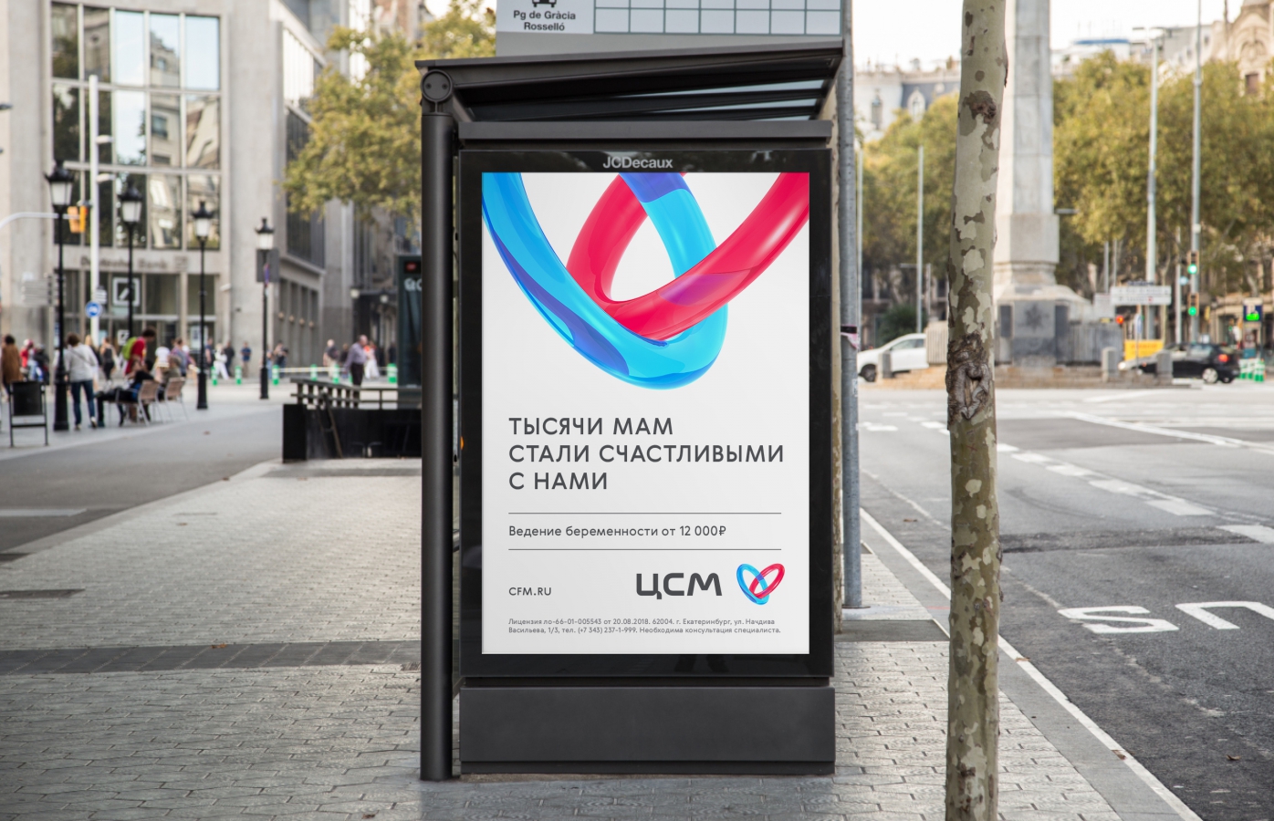 ЦСМ — лидер отрасли не только по количеству циклов, но и по проценту приживаемости. Эти факты легли в основу новой стратегии. Целью коммуникаций стало создание у клиентов ощущения спокойствия, надежности и ясности. Следующим шагом стало обновление всего визуального стиля «Центра семейной медицины». В основу обновленного логотипа и системы визуальной идентичности легли всем знакомые гендерные символы — «копьё Марса» и «зеркало Венеры», отчасти сохранив наследие предыдущей версии логотипа.