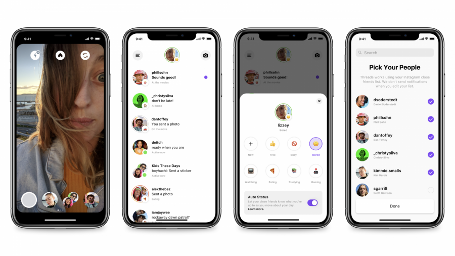 В Threads есть быстрый доступ к камере, чтобы можно было моментально обмениваться фотографиями и видеосообщениями. При необходимости пользователи могут выбрать себе один из статусов в специальном списке («Учусь», «Ничего не делаю», и прочие).