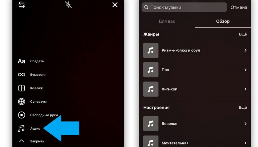 Instagram разрешила пользователям из России добавлять музыку в stories. Новая вкладка появилась после обновления приложения. Кнопка «Аудио» дает возможность записать видео с новой аудиодорожкой, не пользуясь видеоредакторами. Первым на это обратил внимание Telegram-канал «Кухня Яндекс.Дзена».