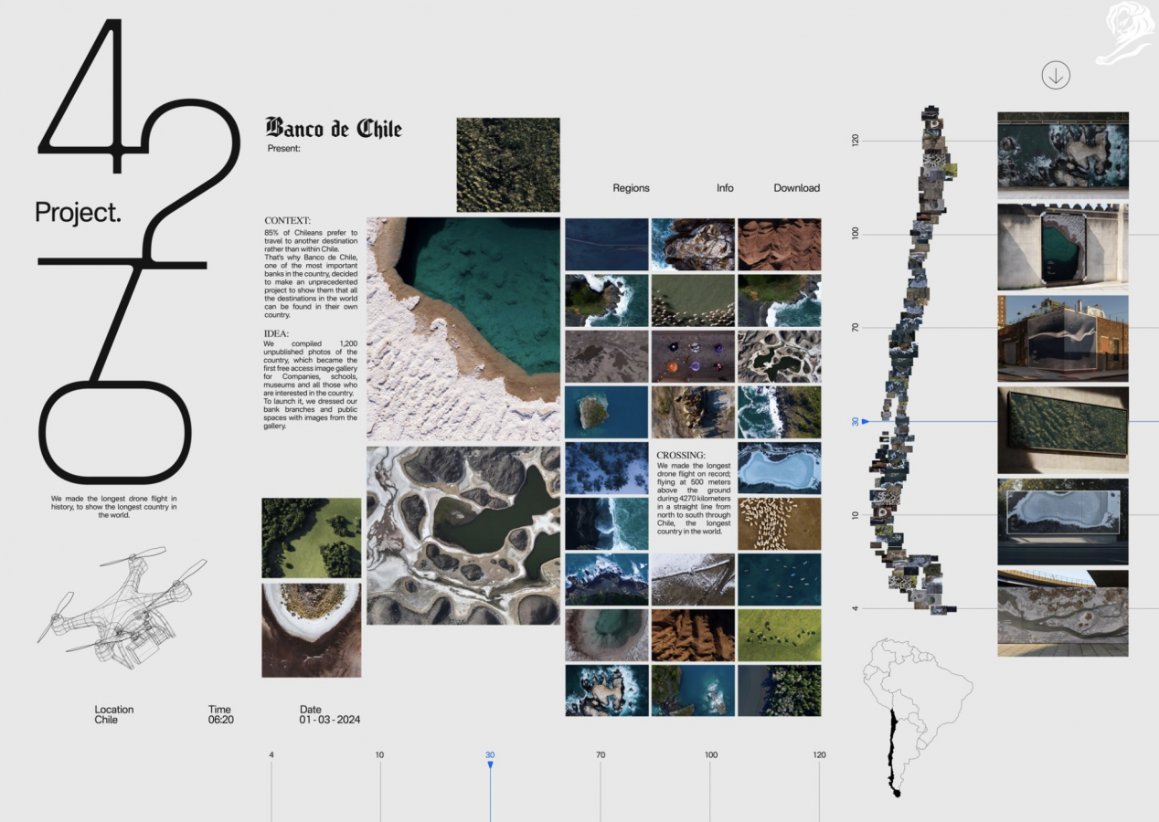 Проект 4727 от Banco de Chile — визуальное признание в любви к родной стране, запущенное, чтобы вдохновить чилийцев путешествовать по своей земле, а не за ее пределами. Исходя из тревожной статистики (85% чилийцев выбирают зарубежные направления), бренд решил показать Чили глазами, которыми ее еще никто не видел.