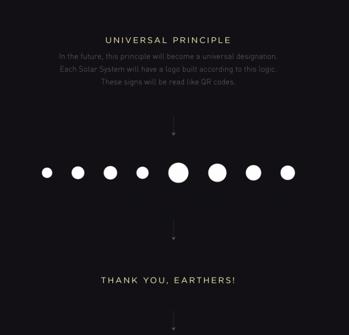 Свою идею создания логотипа Солнечной системы Евгений Ветров объясняет грядущими покорениями других Галактик, которые, по мнению автора,обязательно произойдут. Тогда-то для коммуникаций с другой внеземной жизнью и понадобится фирменный символ Солнечной системы.