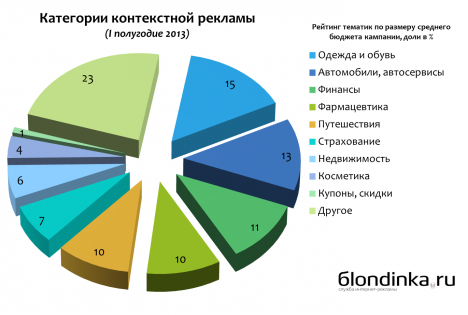 Фармацевтические компании «открыли» для себя контекстную рекламу только в прошлом году и в этом году активно наращивают объемы размещения. Тематиками с ростом ниже рыночного можно назвать автомобили - рекламодатели снижают или «замораживают» расходы, купоны и скидки, которые в предыдущие годы были одними из драйверов.