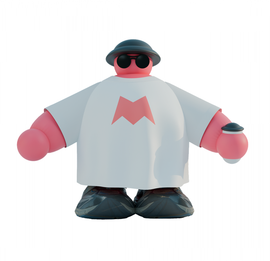 В своей работе художник Misha Libertee изображает типичные черты москвича, которые мы знаем из мемов: любовь к лавандовому рафу, ведь Москва — это про жизнь на бегу, оверсайз одежда, модные огромные кроссовки и большие очки — чтобы оставаться в зоне комфорта, но в центре событий.
