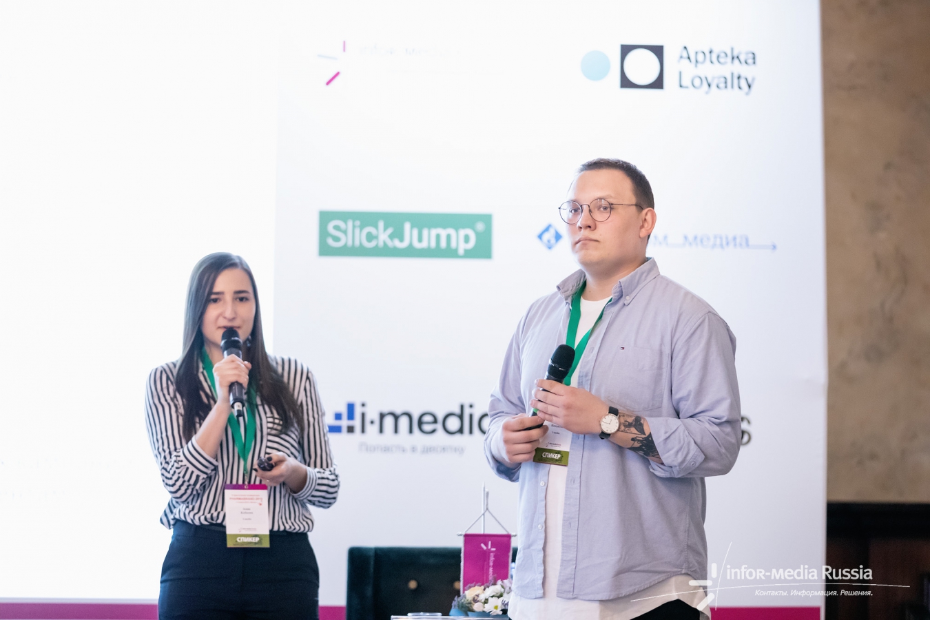 Анна Кобахия (i-Media) и Константин Некрасов (i-Media) выступили на тему «Контекстная реклама Programmatic для фармацевтики. От запуска до оценки эффективности». Основными инструментами контекстной рекламы спикеры назвали ключевые слова и баннеры на поиске, сетевые кампании, сегменты «Яндекс.Аудиторий» и ретаргетинг. Акцент был сделан на том, что информационные запросы приносят около 10% конверсий, поведенческий таргетинг и условия нацеливания становятся более доступными. Анна дала советы, как запуститься быстро и эффективно, а Константин рассказал, как правильно работать с аудиторией. В заключение выступления спикеры призвали постоянно тестировать новые форматы и искать новые возможности.