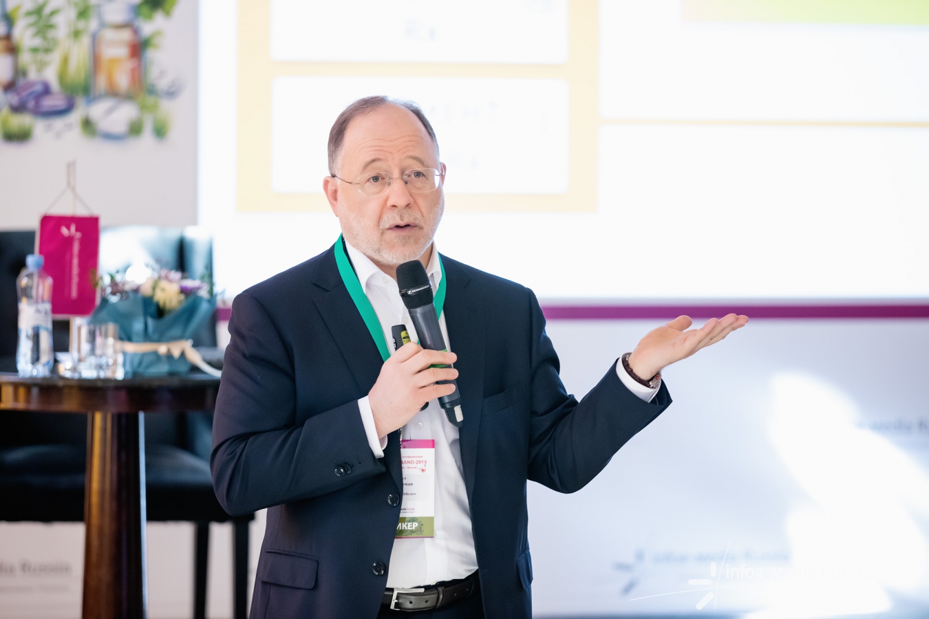 Аналитической головоломкой «Фарма на языке цифр» открыл деловую часть программы Олег Фельдман (Ipsos). Спикер раскрыл схему взаимодействия между основными субъектами рынка, которыми являются фармацевтические производители, врачи, аптеки и пациенты Rx и ОТС+Rx. По результатам опроса, проведенного в 4-м квартале 2018 года, 45,9% пациентов сразу покупают все назначенные препараты в аптеке, а 31,4% — перед покупкой читают отзывы в интернете. Наиболее важными источниками информации о лекарствах были названы обозначены врачи и провизоры. Также в ходе выступления были затронуты следующие темы: основные приложения, которые врачи используют в работе, и электронные форматы взаимодействия медицинских представителей с врачами; затраты по каналам в динамике и структура промоционной активности; распределение контактов между врачами и аптеками по компаниям в целом и между врачами и аптеками в Rx-сегменте; структура продвижения среди врачей разных специальностей и распределение digital-активностей.