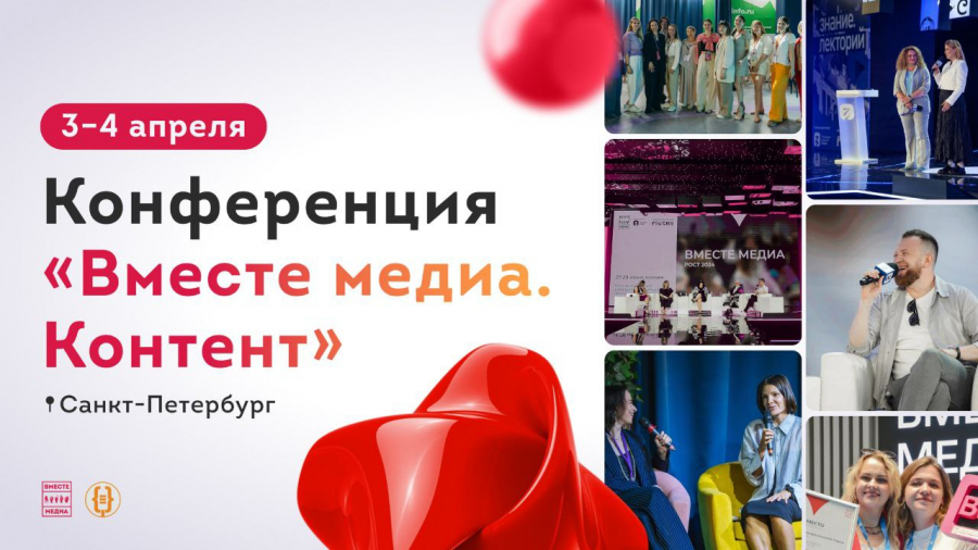 Конференция «Вместе Медиа. Контент» пройдет в Петербурге 3 и 4 апреля. Представители медиасообщества, PR-отрасли и бизнеса обсудят актуальные тренды в создании и дистрибуции контента для СМИ и соцсетей.
