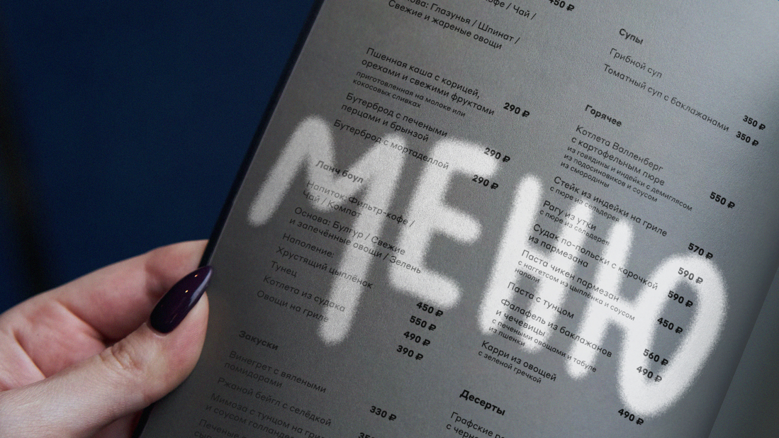 На такой креативный ход создателей вдохновили рукописные граффити Северной столицы. Питерцы мастерски создают свои послания, используя городскую информационную инфраструктуру. Дополняют ее новыми смыслами, транслируют голос улиц. Этот прием — слияние традиционной и хулиганской уличной культуры — воплотился в айдентике нового заведения.