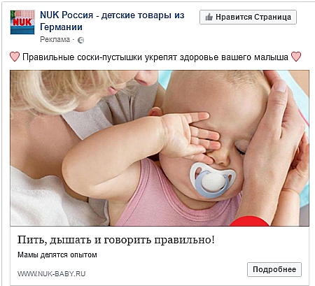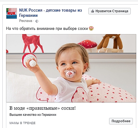 Разберем конкретный пример рекламной кампаний, запущенной через платформу SocialKey Ads, для брендов детских товаров и аксессуаровBuebchen и NUK, широко известных в офлайне.