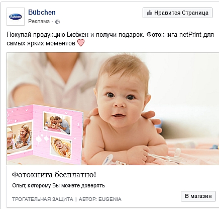Эффективными оказались и объявления в Facebook, которые были дополнены кнопками с призывом к действию: «в магазин», «подробнее».