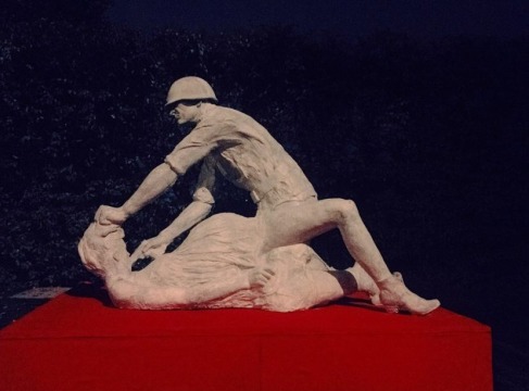 «Меня самого пугает эта скульптура, а тема ужасает. Я сознательно изобразил солдата и женщину в такой эстетике, которая была принята в эпоху соцреализма. Я хотел, чтобы она перекликалась с тем стилем», – говорит Шумчик.