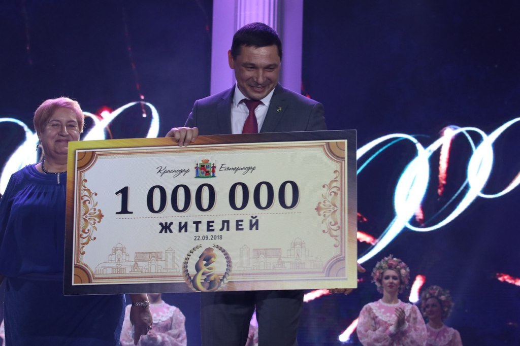 Краснодар официально признан городом-миллионником. Соответствующее символическое свидетельство мэру города Евгению Первышову на праздничном мероприятии по случаю 225-летнего юбилея Краснодара вручила руководитель регионального управления Росстата Татьяна Курнякова, сообщается на официальном сайте администрации и городской думы города.