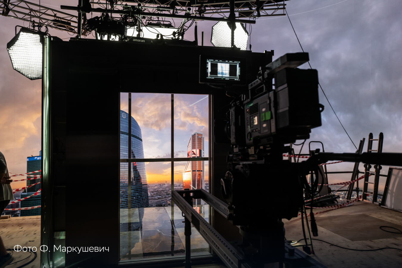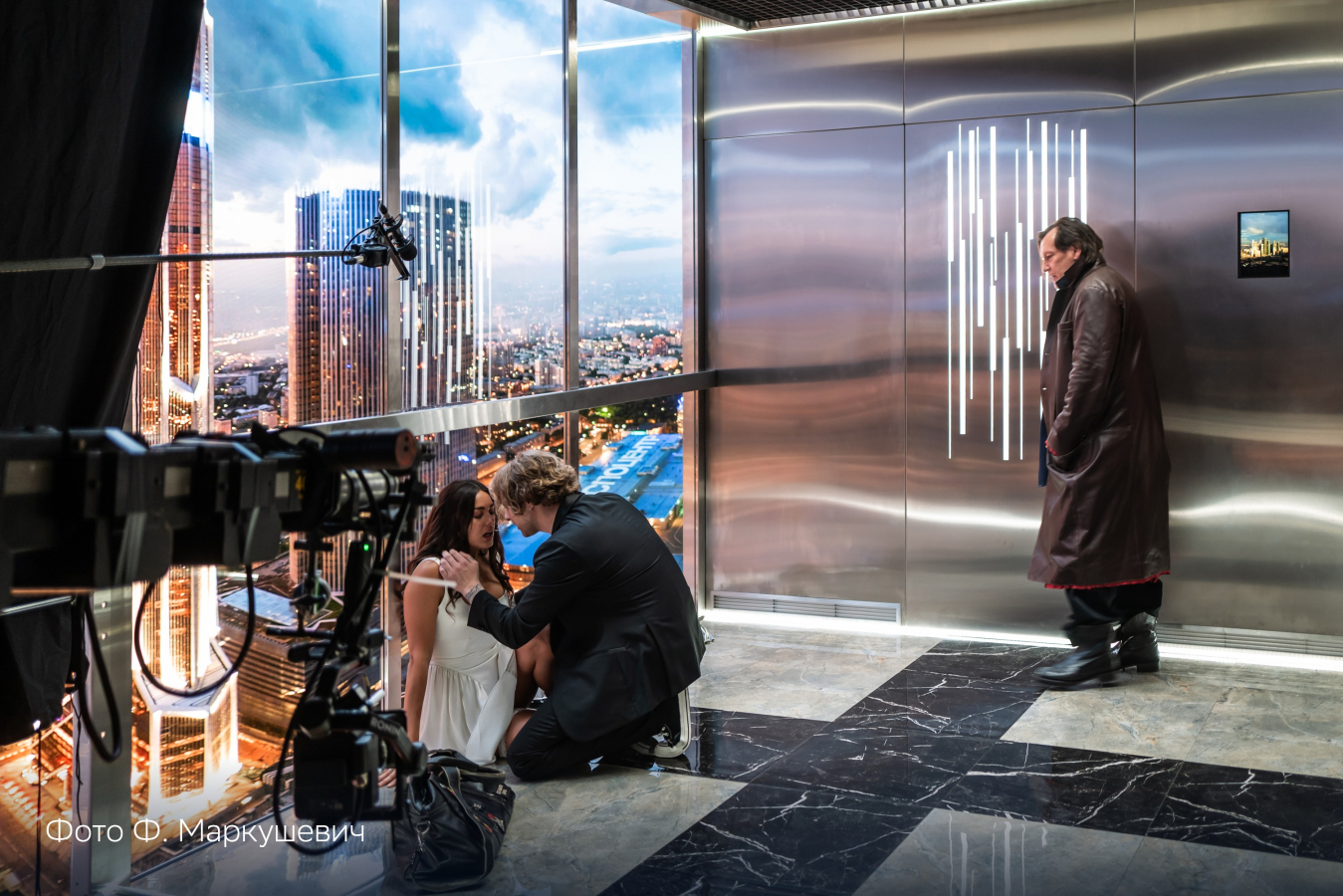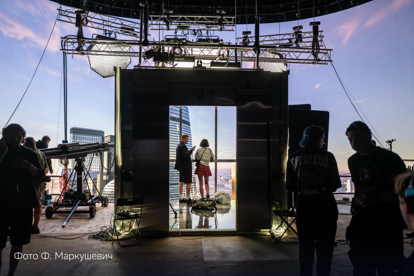 Команда SberStudios создала на «Мосфильме» виртуальный лифт в башне «Москва-Сити» — центральную локацию триллера «Вниз» Марюса Вайсберга с Егором Кридом в главной роли. Такого панорамного лифта не существует в реальности ни в одном из небоскребов.