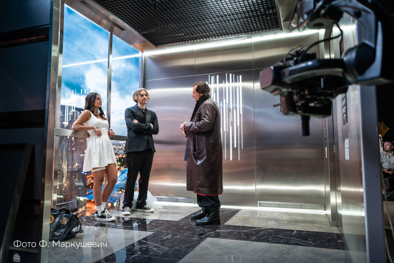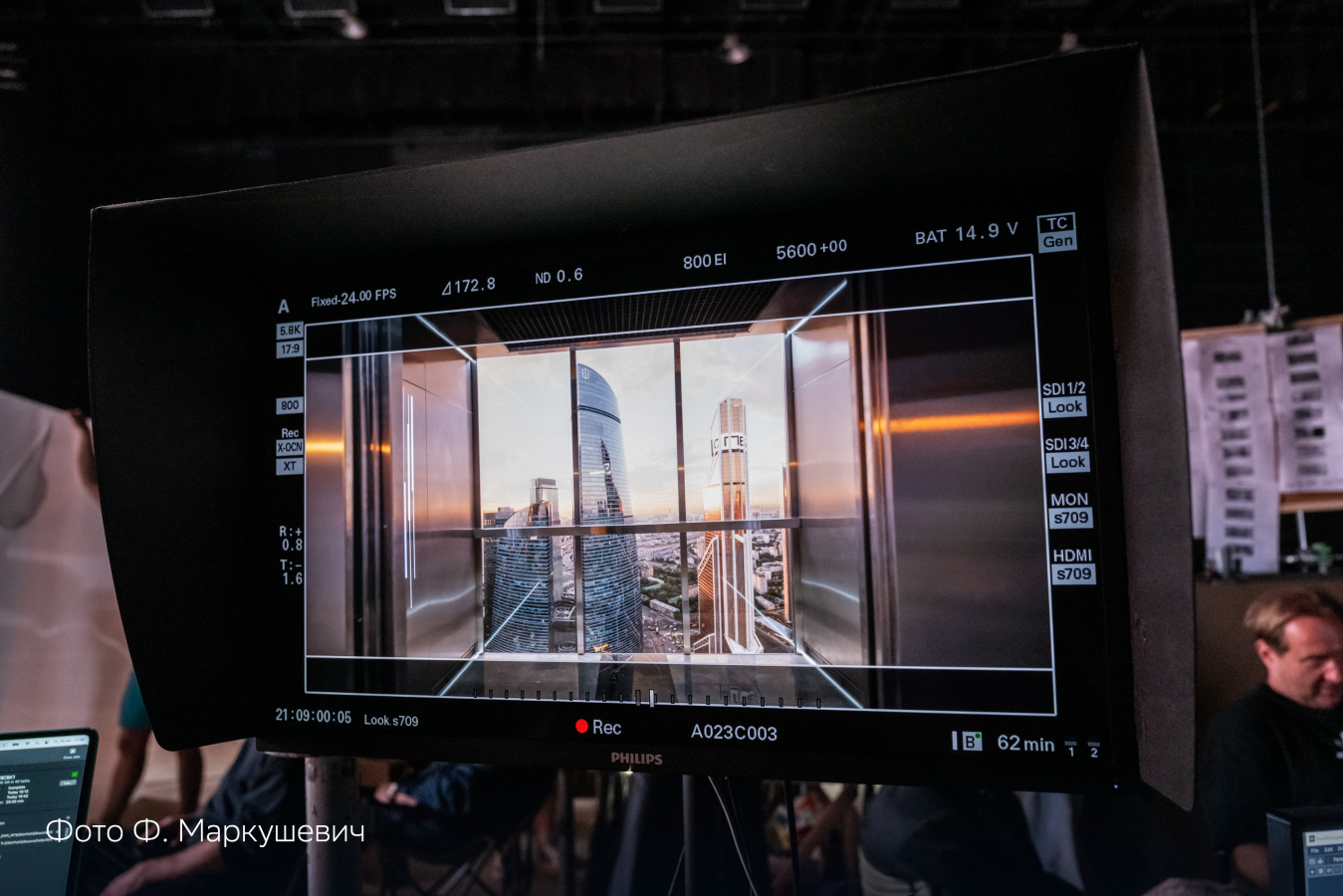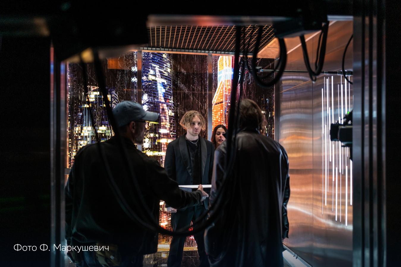 Команда SberStudios создала на «Мосфильме» виртуальный лифт в башне «Москва-Сити» — центральную локацию триллера «Вниз» Марюса Вайсберга с Егором Кридом в главной роли. Такого панорамного лифта не существует в реальности ни в одном из небоскребов.