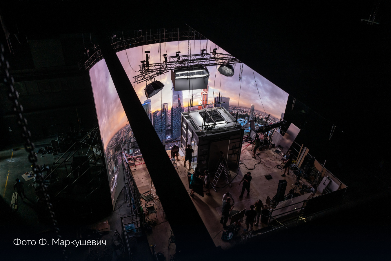 Параллельно в соседнем павильоне была собрана дополнительная декорация для экшн-сцены, где использовалась система motion control Bolt-X.