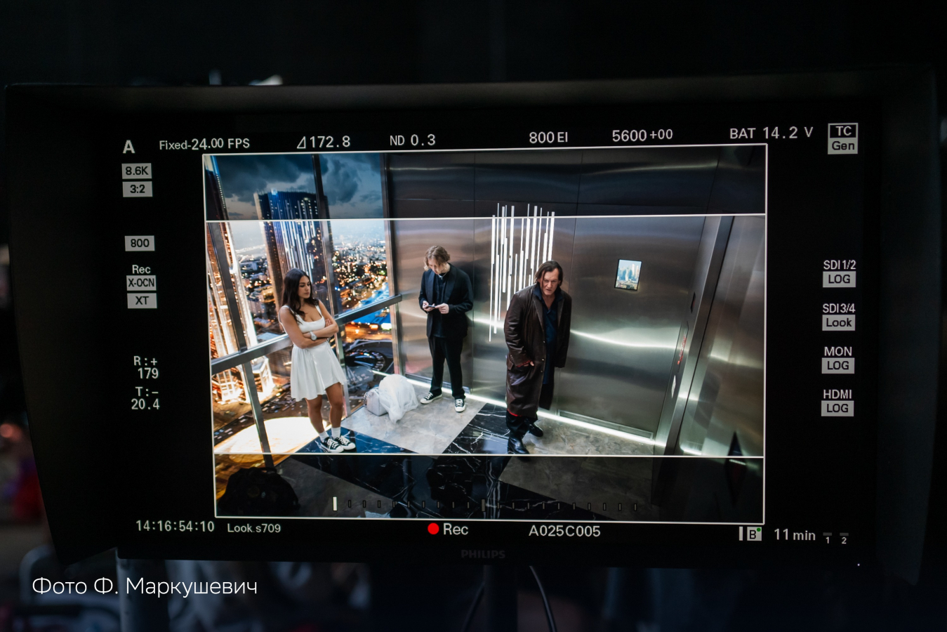 Для создания визуальной среды студия применила технологию Virtual Production, объединяющую volumetric-видео, motion control и AI VFX. В 16-м павильоне была построена декорация кабины лифта на высоте четырех метров, окруженная LED-стеной площадью 20×10 метров.