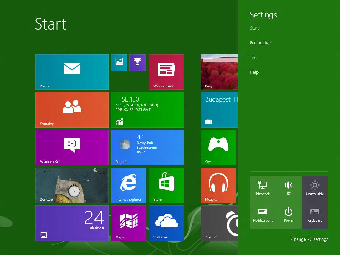 Одно из основных изменений коснется режима Metro, то есть интерфейса Windows. К примеру, появились «живые плитки» разных размеров, которые можно перемещать не только по отдельности, но и группами. Кроме того, появились новые цвета фона и доработана система жестов. Помимо этого, в Windows Blue добавлены четыре новых приложения - будильник, диктофон, калькулятор и видеопрограмма Movie Moments.