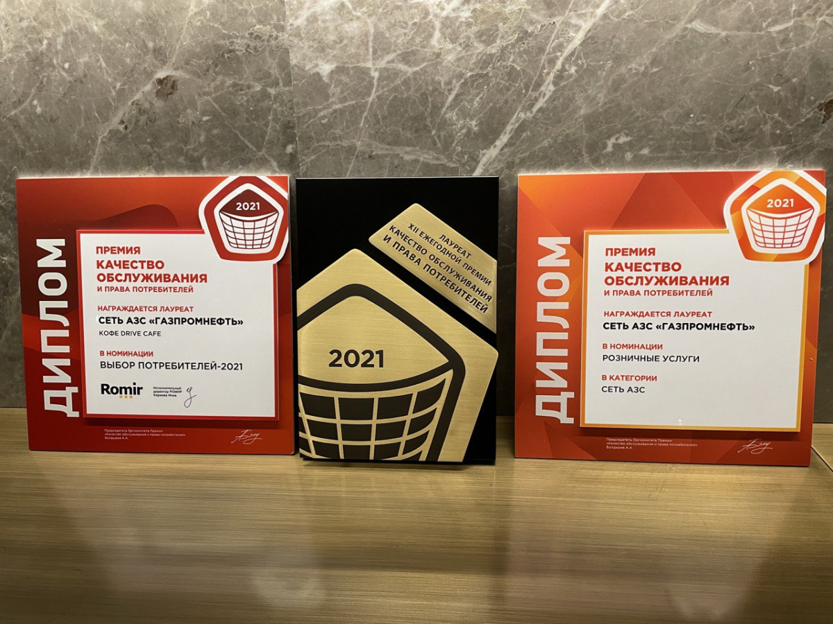 Сеть АЗС «Газпромнефть» победила в номинации «Розничные услуги», а кофе под собственной торговой маркой Drive Café получил высокие оценки клиентов и награду в номинации «Выбор потребителей».
