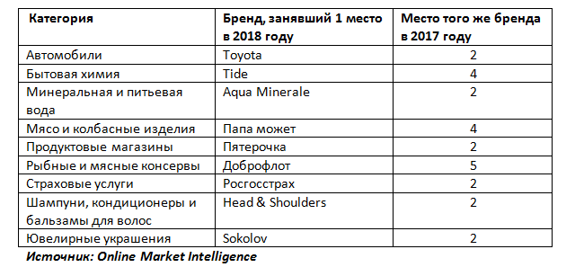 Категории, в которых в 2018 году сменился лидер рейтинга TOP-10: