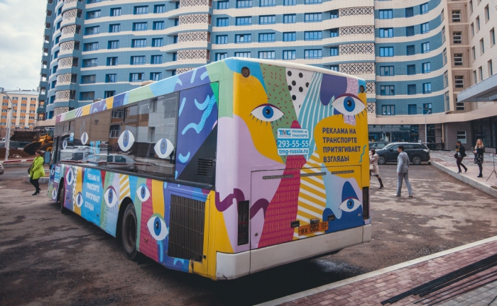 Глазастый автобус будет курсировать по городу, жители и гости столицы Республики обязательно увидят его, ведь рекламу на транспорте невозможно не заметить!