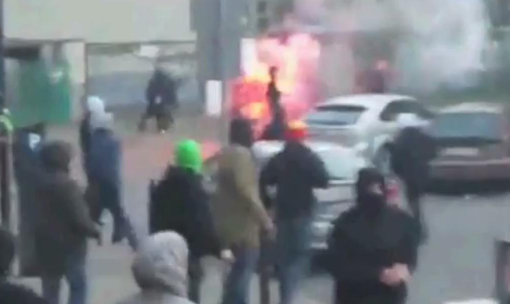 Проходя мимо российского посольства, участники марша решились на его атаку. Хулиганы забросали территорию дипмиссии файерами, бутылками и взрывпакетами. Кроме того, нападающие подожгли будку охраны и пытались залезть на забор посольства.