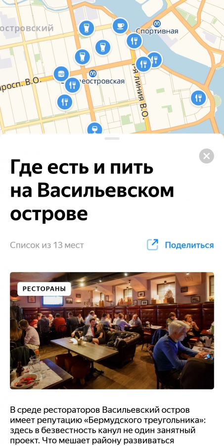 «Мы хотели соединить рекомендации от популярных изданий и возможности современных карт, где размещается актуальная информация. Теперь можно не только прочитать подборки от экспертов, которым вы доверяете, но и сразу найти интересные места на карте, узнать время работы, посмотреть меню или построить маршрут. Больше не нужно искать рекомендации на разных платформах, все ваши любимые издания собраны в одном приложении», — говорит менеджер продукта Юрий Болотов.