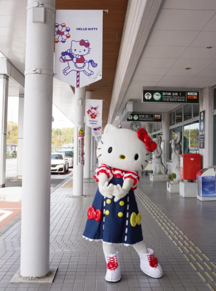 Аэропорт получил полное тематическое оформление с изображениями Hello Kitty и других персонажей Sanrio. В терминалах появились специальные фотозоны, фирменные торговые точки и навигация, выполненная в стилистике бренда. Одновременно был запущен трансфер до парка Harmonyland — локального тематического аналога Tokyo Disneyland, посвященного миру Hello Kitty.