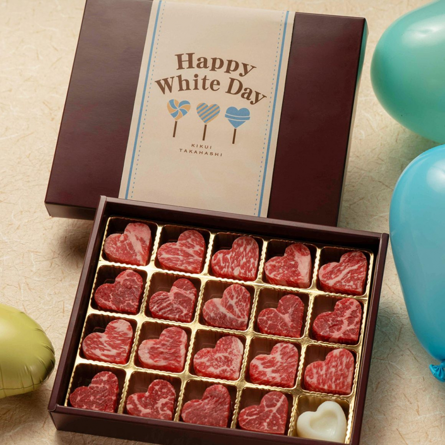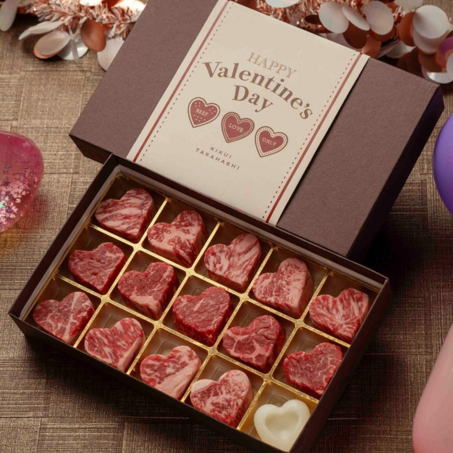 По традиции в Японии в День святого Валентина женщины дарят мужчинам подарки, обычно это бывает шоколад. Но мясная лавка Kikui Takahashi решила позаботиться о тех, кто не любит сладкое, и предложила оригинальную альтернативу — стейки в форме сердца.