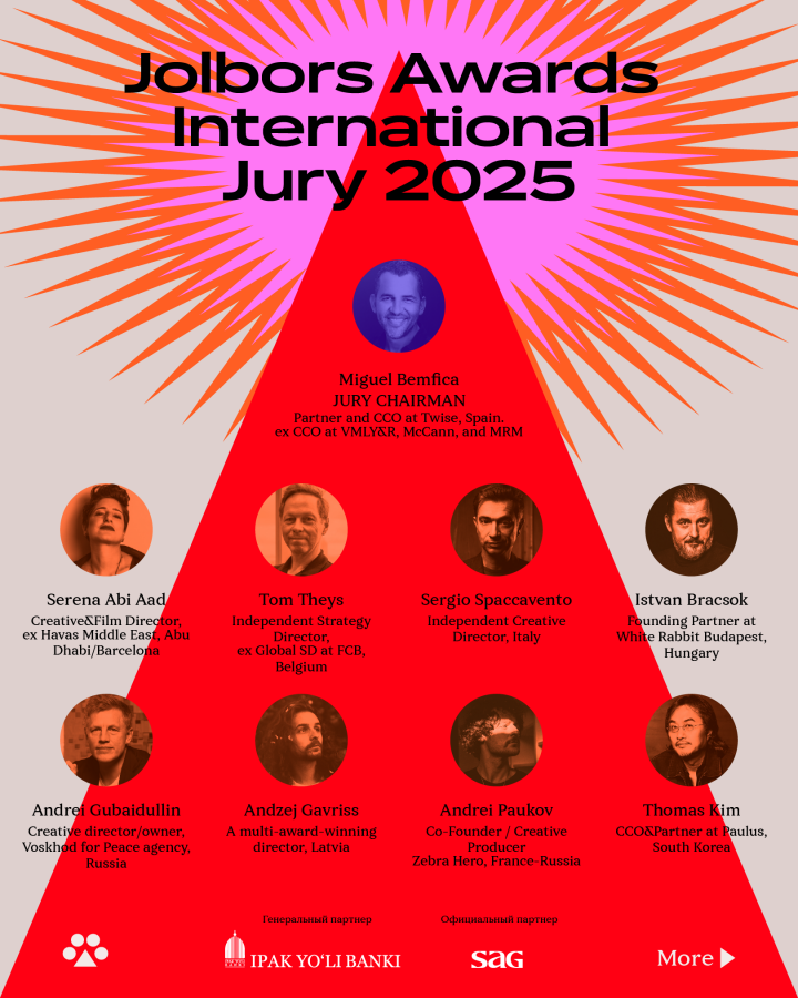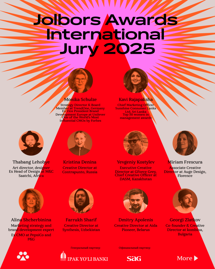 Организаторы Jolbors Festival, который с 2025 года стал международным и принимает заявки от агентств и компаний со всего мира, объявили состав жюри. В него вошли международные креаторы, рекламисты, маркетологи из Испании, Италии, России, Шри-Ланки, Африки, Германии, Бельгии, Латвии, Беларуси, Южной Кореи, Болгарии, Венгрии, и Центральной Азии. Они обладатели многочисленных профессиональных наград, включая Гран-при и золото «Каннских львов», D&AD, Clio, Pentawards, Effie Awards, One Show, Eurobest.